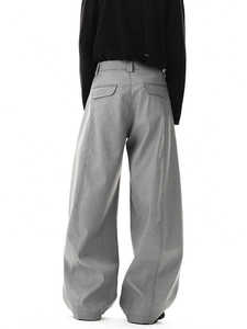プリーツシミターカジュアルパンツメンズ夏クリーンフィットルーズワイドレッグパンツストレートアメリカンハイストリートパンツメンズ