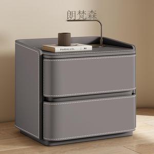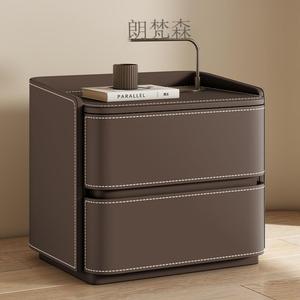 創意設計実木鞍皮2025新型現代シンプルで豪華な高級感のある寝室のベッドの頭の棚