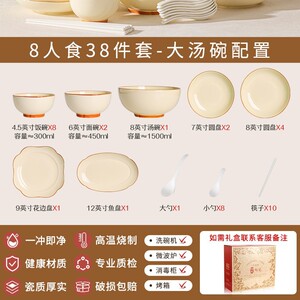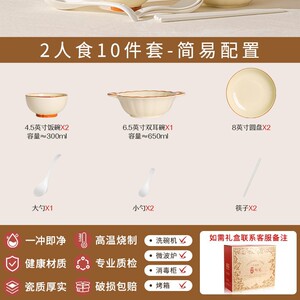 下絵付けクリーム風高価値小ぶりで爽やかな陶器のボウルと皿セット、家庭用ライスプレート、シンプルな食器セット