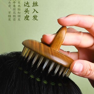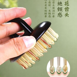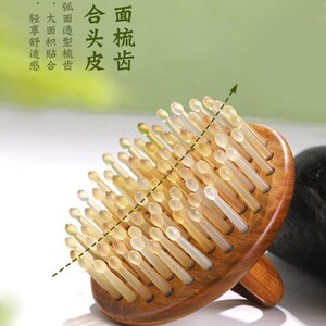 名櫛世家檀木頭部マッサージ櫛天然牛角頭治療櫛