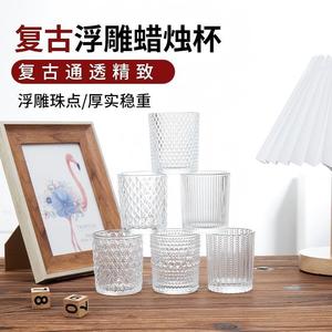 5565 ティーライトカップレトロレリーフアロマキャンドルカップリターンキャンドルホルダー透明空のガラスキャンドルアマゾンホットスタイル
