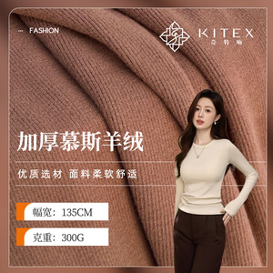 现货 加厚慕斯羊绒300G保暖加绒打底面料 秋冬休闲弹力肌理罗纹布