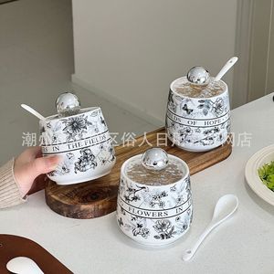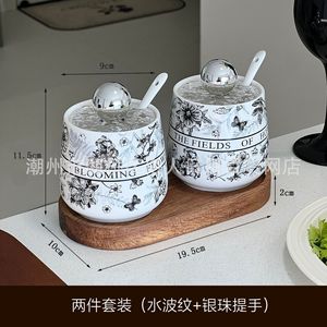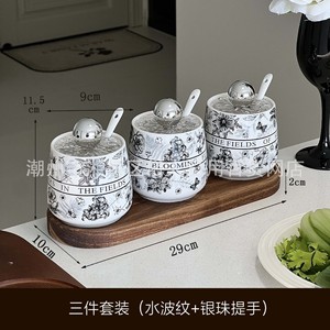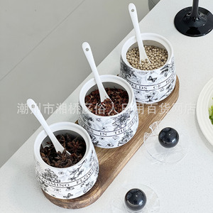 レトロなセラミック調味料瓶、アンティークデザイン、キッチン家庭用調味料カップ、高級ギフト無垢材トレイ
