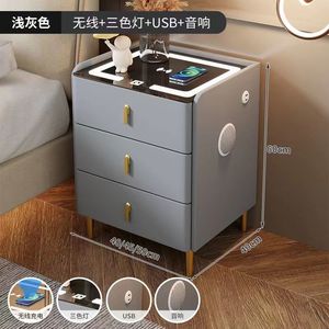 モダンでシンプルな無垢材の家庭用ベッドサイドテーブル多機能ワイヤレス充電ライト高級インターネット有名人スマートストレージ寝室収納キャビネット