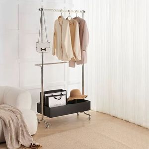 中古コートラック床置き寝室ホームシンプル無垢材可動二次清浄風リビングルーム洋服ラック収納フレンチスタイル