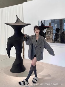 2025年新作韓国風ルーズウールコート韓国風スーツ小柄な人向けの背の高いコート