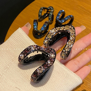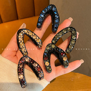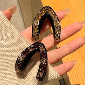 简约高马尾V型抓夹女高级感水钻半扎发夹后脑勺丸子头发饰小发抓