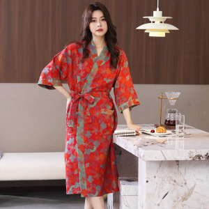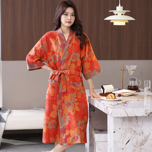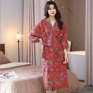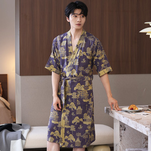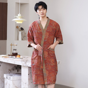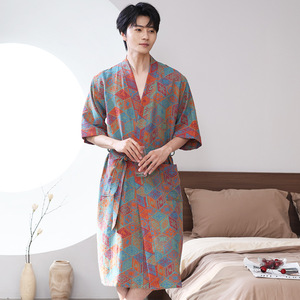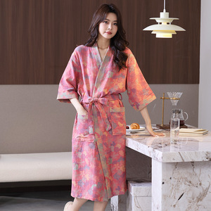A類春夏薄いパジャマ純綿二重ガーゼバスローブホームウェアナイトウェアカップル吸水速乾浴衣