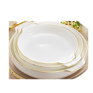 景徳鎮和風金縁双耳プレート家庭用ボーンチャイナクリエイティブネストプレート火傷防止プレート電子レンジ対応スーププレート