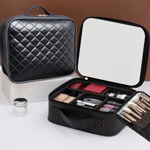 フルスクリーンミラー付きライト付き化粧ポーチ、外出時に持ち運べる大容量のポータブル化粧品収納