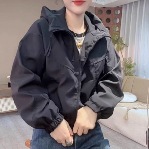 冲锋衣时尚连帽外套女春秋新款2025宽松高级感小个子百搭夹克上衣