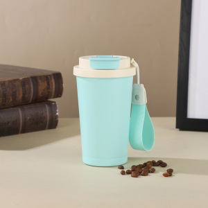 304ステンレス製コーヒーカップ、高級感のある保温スズランカップ、持ち運び用ストラップ付き、携帯用カップ、車載用カップ