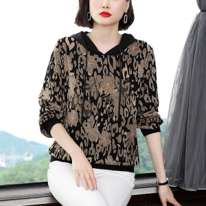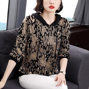 春と秋の薄手のパーカーの女装2025年の新型中年のお母さんの長袖のシャツの大きいサイズの帽子の上着の底のシャツ