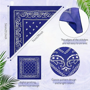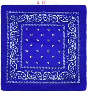 プリントバンダナ12枚パック、軽量でファッショナブル、鮮やかなカラーユニセックスハンカチ - ロイヤルブルー