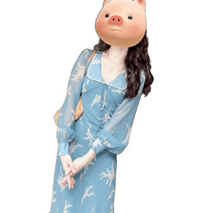 2025年春秋季新款茶歇法式时尚蓝色碎花V领长袖连衣裙