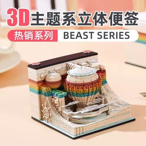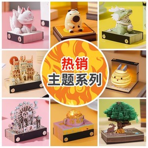 カスタマイズされた3D立体メモ帳、紙彫刻、手で切れるクリエイティブカレンダー、クリエイティブモデル、高価値付箋
