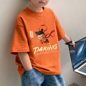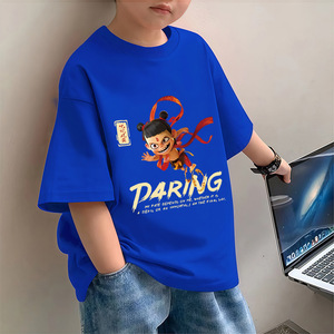 2025 純綿の新しいカジュアル半袖夏男の子半袖 Tシャツ子供トップス中大型子供の夏底シャツ