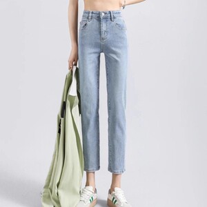 2025 ライトカラージーンズ女性の夏薄い新しいハイウエストスリム 9 点ストレートシガレットパンツ小柄な人向け