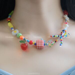 Caitang カラフル〜ガーリーハートかわいいカラフルなキャンディーリボン鎖骨チェーンドーパミンネックレス