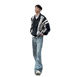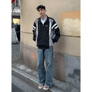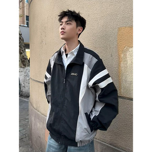 美式撞色拼接飞行夹克外套男款春秋季运动休闲短款潮牌立领棒球服