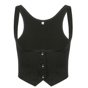Lianlianbuwang INS ストリートスタイルアウターウェアスクエアカラーサスペンダーベストウエストと胸を引き締めるボタンクロップトップ