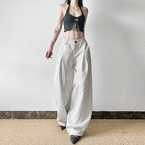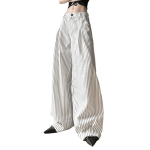シンプルなスタイル、ゆったりとしたワイドレッグストライプカジュアルパンツ、通勤用の気質、ローウエスト、多用途、ファッショナブルでスリムなフロアレングスパンツ