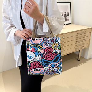 跨境外贸字母涂鸦手提包单肩包日韩卡通图案帆布便当包休闲托特包