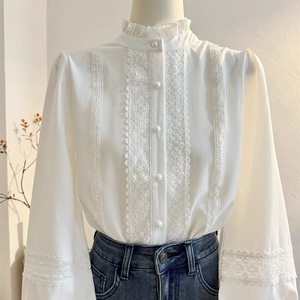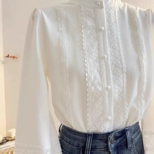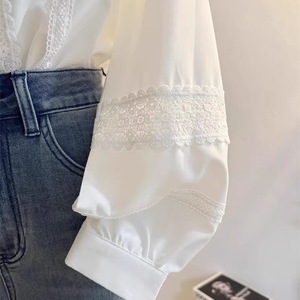 蕾丝花边拼接白色木耳立领衬衫女2024秋洋气内搭灯笼长袖小衫上衣