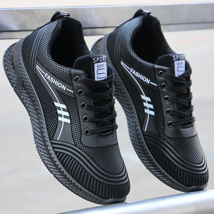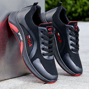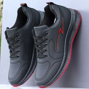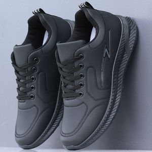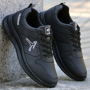 男鞋防水防滑鞋潮鞋秋冬季新款休闲鞋软底跑步鞋黑色皮面运动鞋男