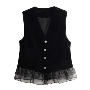 Xiaoxiangfeng ゴールドベルベットベスト 2025 春と秋の新ファッションステッチ西洋スタイルノースリーブトップベスト女性のための