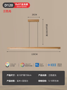 フルスペクトル [S7287-ウォールナット色] ロングシャンデリア 120CM + 3色ライト