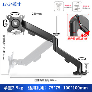 通用电脑显示器气压支架气动臂桌夹穿孔双安装标准VESA孔桌夹支架