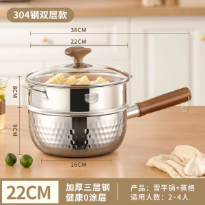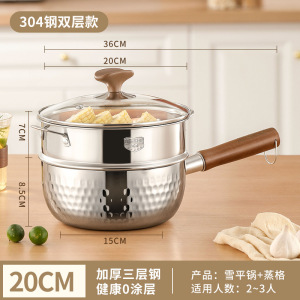 日本式雪平鍋304複合鋼ミルク鍋厚さ無コーティング乳児補助食鍋フライパン蒸煮共通