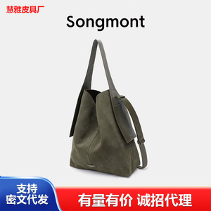 ソングモント 山下裕松 スエード イヤーハンギングトートバッグ レイジー通勤 ショルダー クロスボディバッグ バケットバッグ ラージバッグ