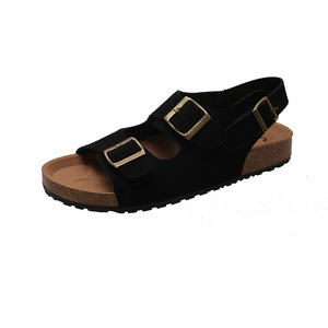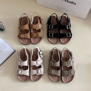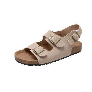 博ケンサンダルの女性は2025の新しい夏の柔らかい底の森系のレトロな快適なカジュアルな厚い底のローマのサンダルを着ています。