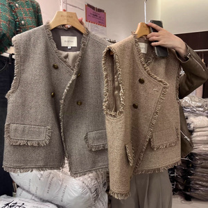 2025秋季新款布凡法式气质名媛流苏小香风粗花呢外搭流苏马甲上衣
