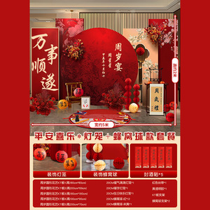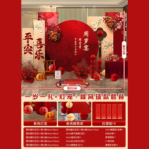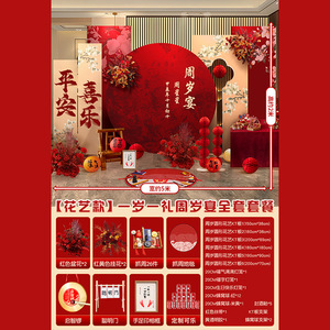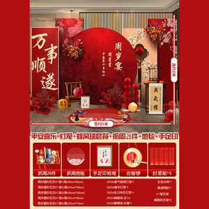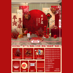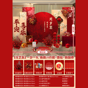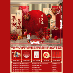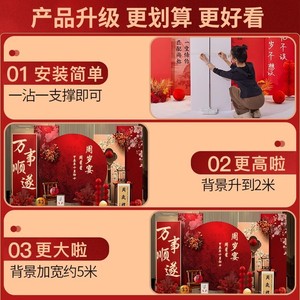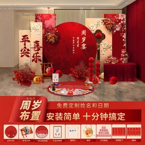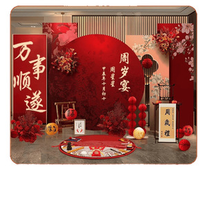 赤ちゃんの1歳の新しい中国風の誕生日宴会のレイアウト男の子と女の子の誕生日セレモニー小道具赤いktボード背景壁
