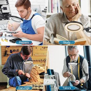 白い外観 - 160MM ランプヘッド - 調光と色調整 - 8 倍拡大鏡 - アルミニウムクリップ