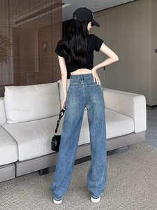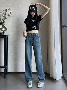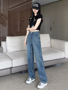 夏用の女性用スーパーソフトテンセルジーンズ、薄手、ハイウエスト、ドレープ、ライトブルー、ナローバージョン、アイスシルクストレートパンツ