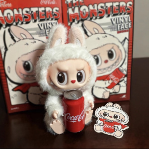泡泡马特拉布布可口可乐搪胶脸系列盲盒labubu三代手办心动马卡龙