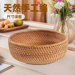 ベトナム純粋な手作り籐トレイフルーツプレート両耳籐バスケット織パンバスケットスナックピクニックバスケットピクニック籐バスケット