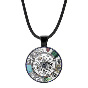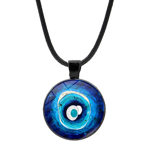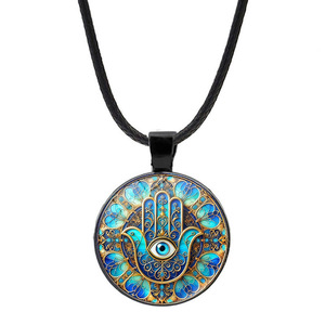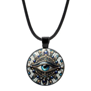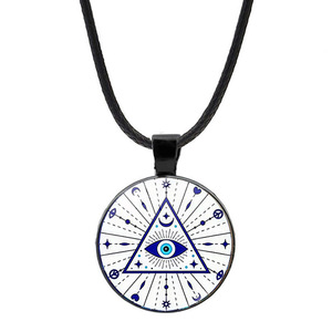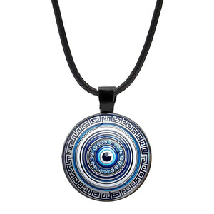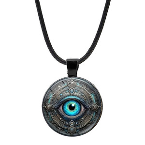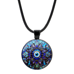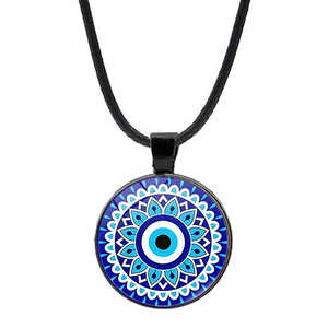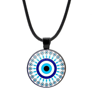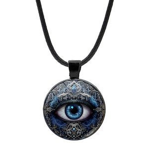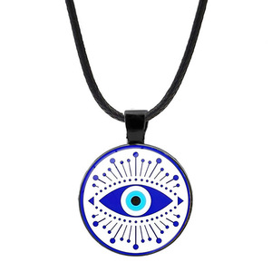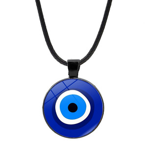 蓝色邪恶之眼时光宝石项链女跨境复古百搭毛衣链黑色皮绳吊坠饰品