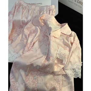 氷と雪のシルクパジャマ夏の女性の半袖ショーツ純粋な欲望レース宮殿スタイル甘いファッションホームウェアセット