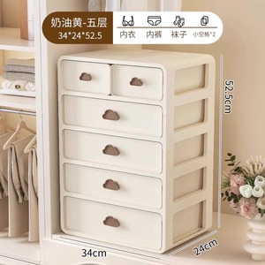 クリームイエローのクラウドボタン-5層[下着+下着*2+靴下*2引き出し]