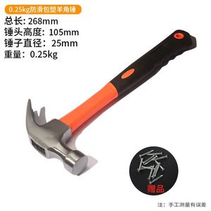0.25KG プラスチックコーティングクローハンマー (重量 0.35KG) 注文すると釘が無料になります