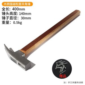 木製ハンドル付き強力磁気クローハンマー 0.5KG (重量 0.7KG) ご注文で釘無料