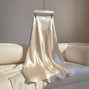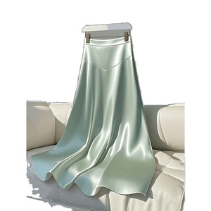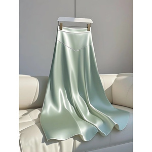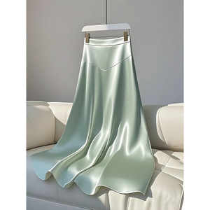 2025年初春ハイウエストカバー股痩身Aラインアンブレラスカートミドル丈スカート今年人気の女性用グリーンサテンスカート