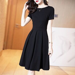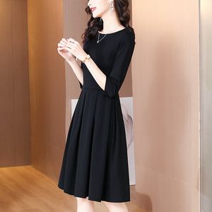 黒のドレス春と秋の新しい気質スリムヘップバーンスタイルリトルブラックドレス女神スタイルボトリングスカート