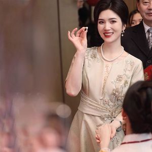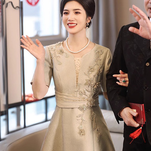 年轻妈妈改良连衣裙中年喜婆婆日常婚宴礼服小个子妈妈裙夏季新款