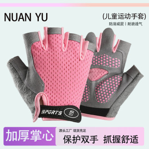 男の子と女の子向けの子供用ハーフフィンガーグローブ、春夏のサイクリングスポーツフィットネスパッド、滑り止め、耐摩耗性、通気性、保護性、軽量